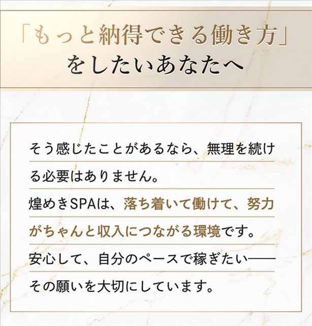 煌めきSPAでは、容姿だけで採用を決めることはありません。