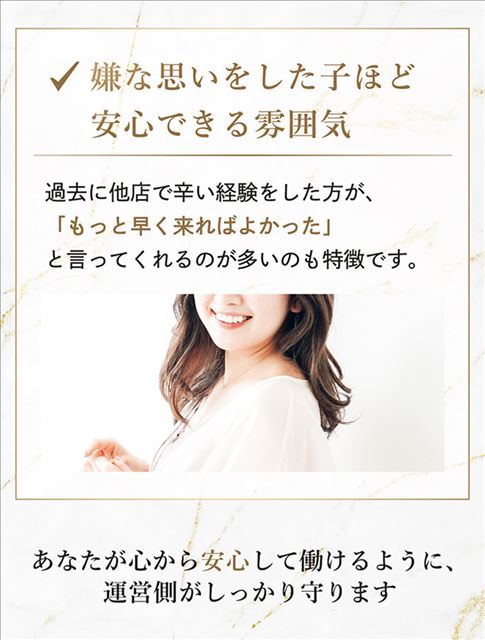 働く女の子の安心・働きやすさをいちばん大切にしているお店です。