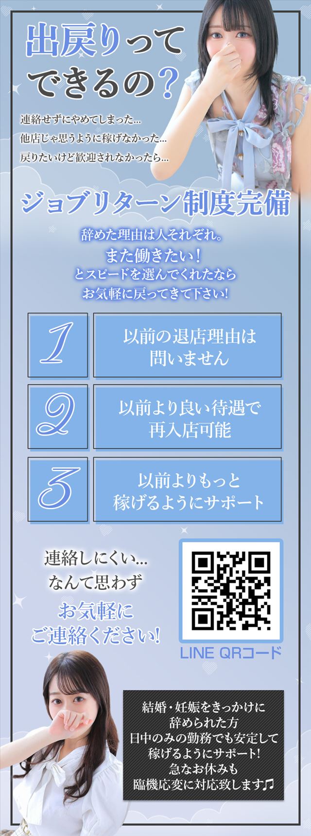 採用担当 友達と面接で5万円プレゼント! 日本橋はスピードの中でも待遇にこだわってきました。女の子が仕事しやすい環境作りに日々取り組んでおりますので是非一度ご連絡下さい♪
