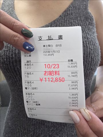 💖 31歳 スキマ時間でしっかり稼ぐ 💖✨ キャスト募集中 ✨⏰ 受付時間: 10時~19時📌 指名料金一覧 📌120分本指名75分指名105分指名120分本指名60分本指名60分指名💰 ¥112,850💰🌼 女の子コメント 🌼「今日も待機なくお仕事に行けました😁✨」