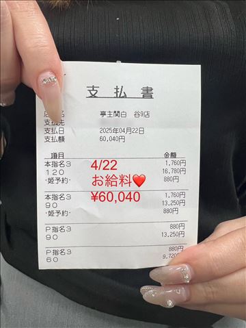 💖 33歳 緊急出勤でしっかり稼ぐ 💖✨ キャスト募集中 ✨⏰ 受付時間:10時~18時📌 指名料金一覧 📌120分本指名90分本指名90分パネル指名60分パネル指名💰 ¥60,040 💰
