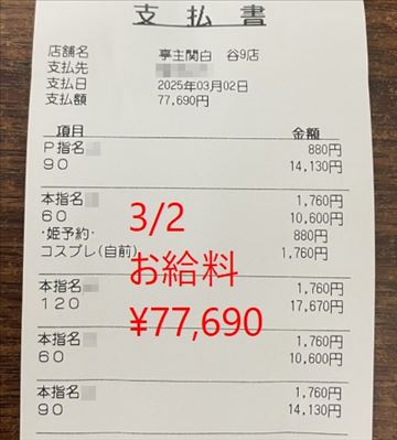 28歳 Wワーク の キャストの場合 10時~18時受付 90分 パネル指名 60分 本指名 +OP+姫予約 120分 本指名 60分 本指名 90分 本指名 ¥77,690-