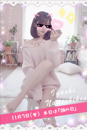 11月7日(金)今日は「鍋の日」です🍲✨寒い季節、お鍋のように“ほっこり温まる空間”が恋しくなりますよね🧡癒しなでしこでは、温かい完全個室待機でリラックスしながら高収入💰深夜帯はさらに+1000円UPで、短時間でもしっかり稼げます✨タオル洗いもお掃除も不要で、ストレスゼロの環境です🌸【…