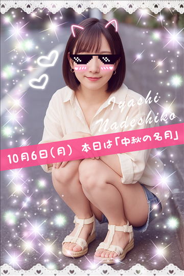 10月6日(月)今日は「中秋の名月」です🌸お月さまが一年で一番きれいに見える日ですね🌕✨頑張った自分を癒す時間をつくりませんか?癒しなでしこでは、月のようにやさしく包み込む空間をご用意しています💖お仕事帰りにサクッと稼いで、夜はゆっくりお月見気分でリラックスしませんか🍡当店はコンセプト付の一番稼げるメンズエス…
