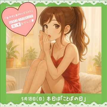 5月18日(日)今日は「ことばの日」です🌸“癒された”や“ありがとう”…たった一言でも心が温かくなりますよね🫧癒しなでしこでは、働く女性との言葉のやりとりも大切にしています✨セラピストさんも甘やかされる職場で、安心してスタートしませんか?💖【*絶対も…