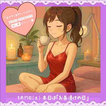 5月17日(土)今日は「お茶漬けの日」です🌸さっと食べられてほっと一息つけるお茶漬け、忙しい現代人の味方ですよね🍵癒しなでしこも、働きやすさと心のゆとりを大切にしています✨Wi-Fi・ブランケット・電子書籍タブレットなど、待機中の快適さも万全!【*絶対もらえる*】面接交通費5千円!コンセプトがあるから簡単に稼げち…