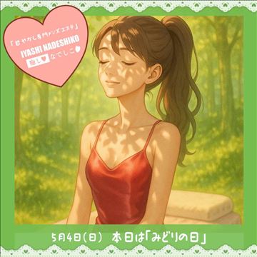 5月4日(日)今日は「みどりの日」です🌿自然に親しみ、心を癒す日🌸当店も、セラピストさんが心地よく働ける“癒しの森”のような空間づくりを大切にしています🌼Wi-Fiや充電器、ブランケットに加え、静かな完全個室での待機が可能🍃谷町九丁目駅近で、自然体のあなたでしっかり稼げます🌿💖当店…