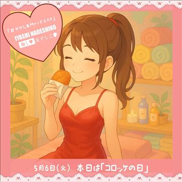 5月6日(火)今日は「コロッケの日」です🌸ホクホクのコロッケがほっと心を癒すように、私たちのお仕事もお客様に“ほっと”していただくことが大切🍽️💕そんな癒しを届けながら、自分も無理なくしっかり稼げる環境がここにあります✨当店はコンセプト付の一番稼げるメンズエステです★■コースバック90分…