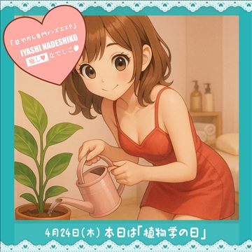 4月24日(木)今日は「植物学の日」です🌸植物がゆっくりと成長するように、女性のペースも大切にしています🌱焦らず自分らしく働けるよう、環境づくりにはとことんこだわっています✨待機中も快適に過ごせる設備が充実🍀当店はコンセプト付の一番稼げるメンズエステです★■コースバック90分:9000円120分:11000円1…