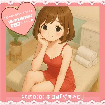 4月27日(日)今日は「哲学の日」です🌸「自分とは何か」そんな風に立ち止まる日があってもいいですよね✨癒しなでしこでは、自分らしく働ける環境を大切にしています🍀未経験者も大歓迎♪一歩踏み出してみませんか?💖【*絶対もらえる*】面接交通費5千円!コンセプトがあるから簡単に稼げちゃう★★当店はコンセプト付の一番稼げ…