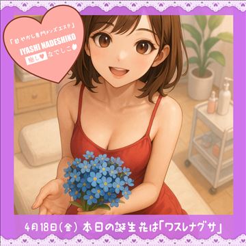 4月18日(金)今日の誕生花は「ワスレナグサ」です🌸花言葉は「真実の愛」💙癒しなでしこでは、働く女性一人ひとりに“真心”で寄り添ったサポートをお約束✨未経験の方も、経験者の方も安心して長く続けられる環境です🌿忘れられない好待遇、体感してみませんか?💖【*絶対もらえる*】面接交通費5千円…