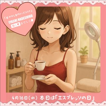 4月16日(水)今日は「エスプレッソの日」です🌸小さなカップに凝縮された深い味わい…☕癒しなでしこも、短時間で沢山の収入が叶うお店です✨完全個室・雑費ゼロ・最低保証ありで、未経験の方も安心スタート♪空いた時間に少しだけ…そんな働き方も大歓迎💖駅チカで通いやすく、待機中も快適…