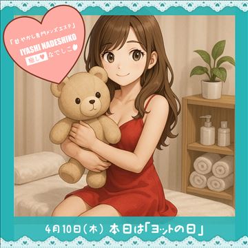 4月10日(木)今日は「ヨットの日」です🌸爽やかな風を感じながら優雅に進むヨットのように、癒しなでしこもゆったりと働ける環境です⛵️✨完全個室待機・Wi-Fi完備・電子書籍タブレットありで、待機時間も快適🎶新人さんには丁寧な研修&最低保証ありだから、未経験でも安心して始められます🌷お部屋の掃除やタオルの洗濯はス…