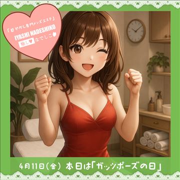 4月11日(金)今日は「ガッツポーズの日」です🌸何かをやり遂げたとき、思わずガッツポーズが出る瞬間ってありますよね😊癒しなでしこでのお仕事も、そんな“やり切った”という達成感が味わえる毎日です♪「お客様に喜んでもらえた!」「今日も目標達成できた!」そんな小さな積み重ねが、やがて自信になって…