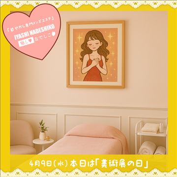 4月9日(水)本日は「美術展の日」です🌸美術展では、ひとつひとつの作品に込められた想いに触れ、感性が豊かになりますよね🖼✨癒しなでしこでは、"美意識"や"癒しの心"を大切にする女性を全力でサポートしています💐完全個室待機で人目を気にせずリラックス🌿制服貸与、未経験者には…