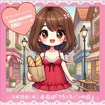 11月28日(木)本日は「フランスパンの日」です🥖聞くまでもなく、フランスパンなんて普段食べませんよね?🤔でもでも意外とパン屋さんで買ってそのまま食べても美味しいんですよ🌸香りと食感が心地よくリラックスして幸せな気持ちになれるのでお試しください⭐️当店はコンセプト付の一番稼げるメンズエステです★■コースバック9…