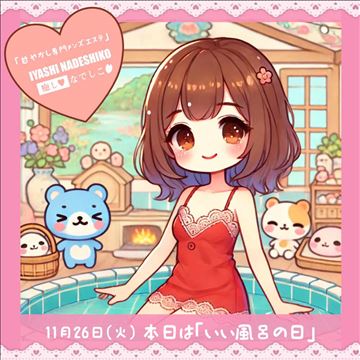 11月26日(火)本日は「いい風呂の日」です😊そろそろシャワーだけではなくしっかり湯船に浸かって体の芯まで温めてくださいね🌸副交感神経を活性化させて、血行促進・睡眠向上・自律神経を安定させて、多幸感を得ましょう⭐️【*絶対もらえる*】面接交通費5千円!コンセプトがあるから簡単に稼げちゃう★★当店はコンセプト付の一…