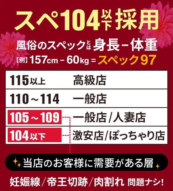 たくさんいる会員様のお好みは多様化しています。ただいまふっくら体型の方へのリクエストも多く即戦力として活躍が期待できます!