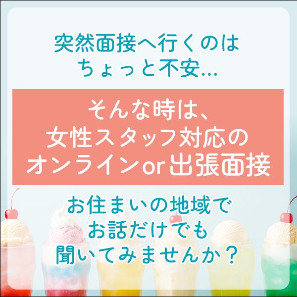 面接はオンライン面接もできますので、もしご興味があればお問い合わせください。