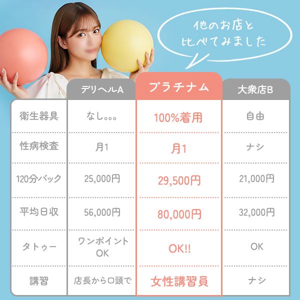高級店からの移籍で月収は落ちるかなって思ってたけど、実際プラチナムに来てからのほうが稼げてる!グループアージュの集客力ってやっぱすごいなって実感してます笑