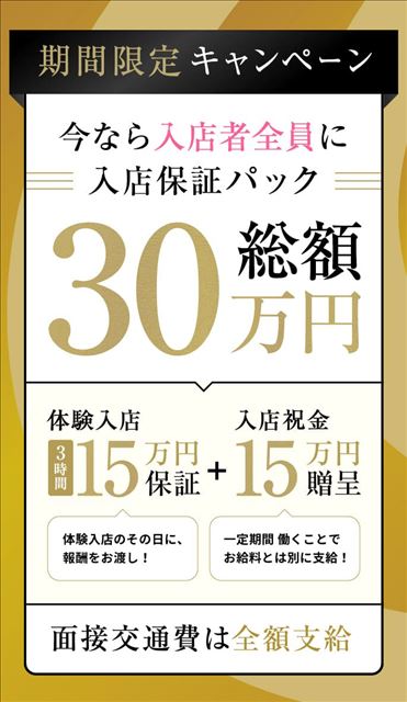 体験入店3時間15万円保証/入店祝い金15万円/出稼ぎ保証もあり♪