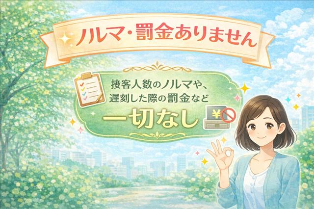 時代にマッチしたコンセプトですので幅広い年齢層の方が活躍できる落ち着いた雰囲気のお店となっております。もちろん“特別なプロのプレイ”などを求める事も一切ございません!!業界経験がない女性もブランクさんも応援します!!