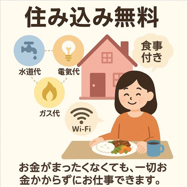 住み込み完全無料!光熱費・食費・Wi-Fiも全部込み