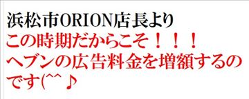 どうもオリオン店長の山田です(^^)/先程、ヘブンさんとの打ち合わせが終了「山田さん、この時期に広告費を増やしてくれるなんて、ありがとうございます!!」と言われる・・・自分は率直に「ヘブンは高い!!ヘブンさんの為ではなく在籍女性達の為です!!」と伝えてサインを終える(笑在籍キャストさん達はどんな時でも、粘り強く頑張っ…
