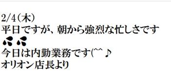 おはようございます!店長の山田です今日も嬉しい知らせが(^^♪◆復帰希望の連絡が入りました。今週は復帰を希望される2名の女性から連絡を頂けました。「なんでまた当店に来てくれるのですが?」とお聞きしたところ「オリオンさんなら確実に安心して働くことができるからです」と凄く嬉しいお言葉が(^^♪◆朝から求人ラインが鳴る!隣…