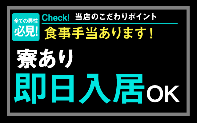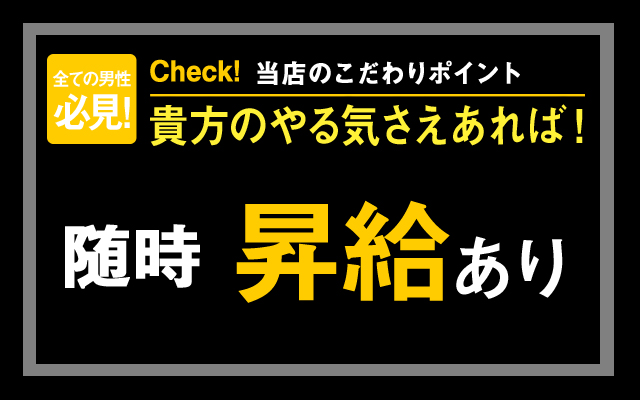 | 給与 | 33万円~(研修期間あり 能力やスキルに応じて即昇給あり) 食事付、大入りボーナスあり |