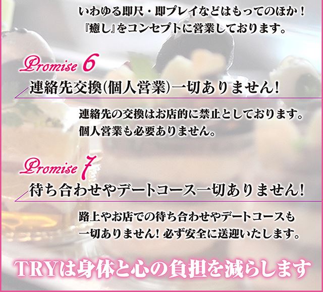 風俗業界はダークで不安定なイメージを持たれがちですが、『TRY』は激戦区宇都宮でトップを走り続けて21年、末永く働ける安定した職場です。