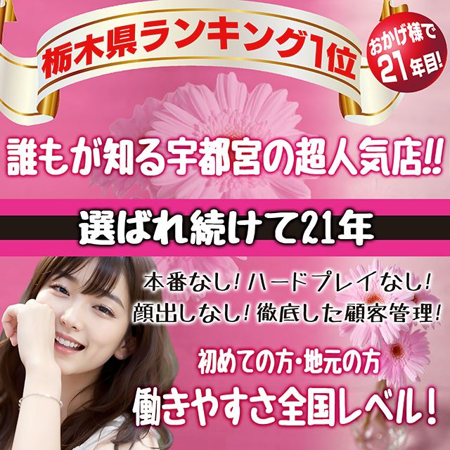 宇都宮トップクラスの広告力!ほぼ全ての媒体に広告を展開しているので、知名度・集客力は地域で群を抜いています。時間帯や曜日に関係なく、安定して稼げるお店です!
