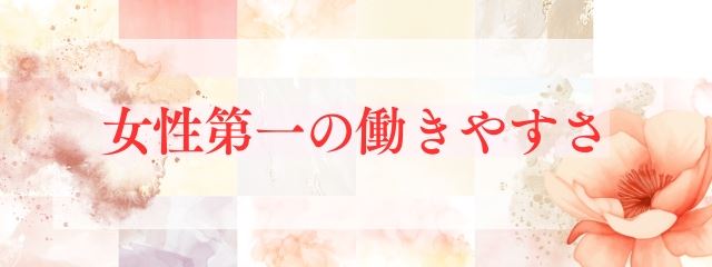 落ち着いた雰囲気の女性が、安心して自分らしく働けるアットホームなお店です。未経験の方でも不安なくスタートできるよう、スタッフが一人ひとりに寄り添い、しっかりとサポートいたします。