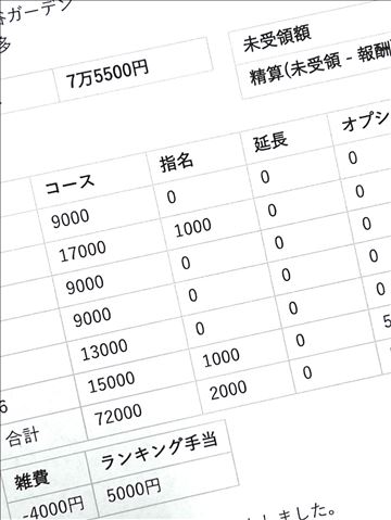 7/22日体験入店のHさん予約完売のお給料大公開です
