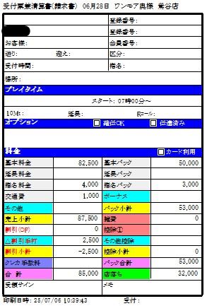 7月入店の体験入店時の明細♪
