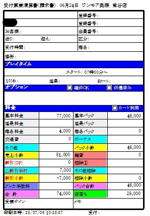 7月入店の体験入店時の明細♪