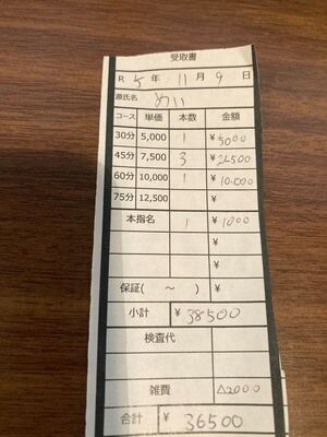 入店3日目【お給料明細】5時間で手取り36500円!