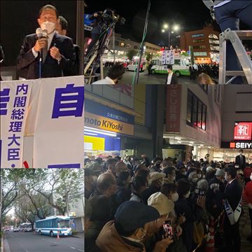 久米川駅前に…内閣総理大臣来とった😦