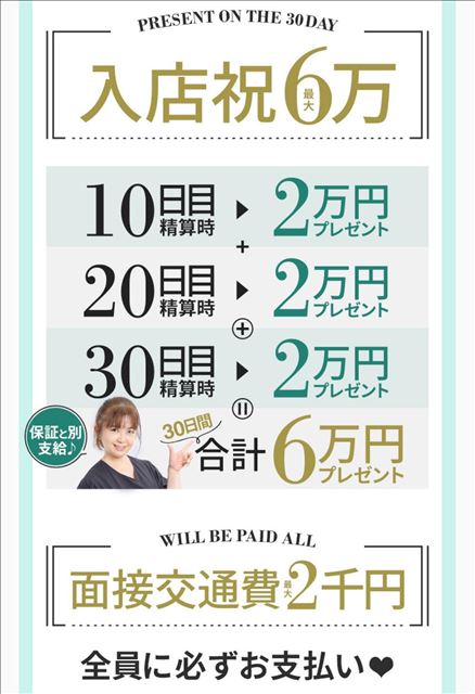 ◆入店祝い金 勤務日数によるスライド支給 6万円
