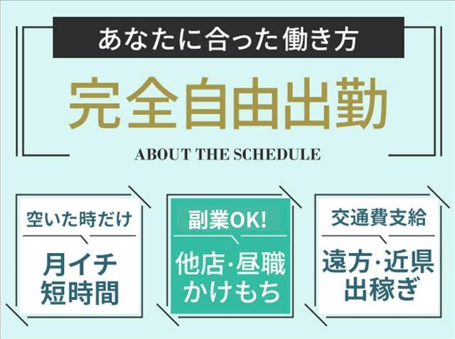 | 勤務日 | 完全自由出勤です♪ あなたの空いたお時間で自由に働けます♪ |