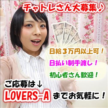 LOVERS-Aのチャトレとは❗️❓↓↓↓↓✨お客様と会わずに風俗店なみの高収入✨(風俗じゃないから100%性病になりません)💰初日の平均日給は35,000円以上💰(全額日払いなので即日高収入を実感)🌟365日24時間完全自由出勤🌟(1日2~3時間だけでもOK)❗️ノル…