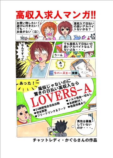 『お金は稼ぎたい!けど……。風俗やキャバクラのお仕事には抵抗が……』というあなたを大歓迎♪LOVERS-Aのライブチャットレディになって周りのお友達に差を付けちゃいましょ☆彡スタッフ一同全力でサポートします♪体験入店も大歓迎です!!初心者さんも気軽にご応募くださ…