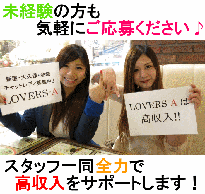 LOVERS-Aのチャトレで一緒に稼ぎましょう🎵チャットルームは新宿、新大久保、池袋の各駅徒歩3分👣年中無休で24時間開放❗️都合の良い時間に好きなだけ稼げます💪初心者の女性でも安心して稼いでいただけるようにスタッフ一同で親切丁寧にサポートします。質問だけでも気軽にお問い合わせください🙇♂️チャトレ…