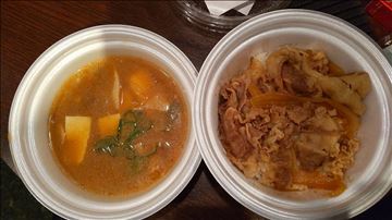 皆様こんばんは♪ここ数日寒さの厳しい夜となっておりますが皆様いかがお過ごしでしょうか?コロナとインフルエンザの流行で咳止めの薬も足りなくなっていると報道番組で取り上げておりました。皆様には体調管理に注意してお過ごしくださる様、お願い申し上げます。今日の御飯久々のこのコーナー笑笑牛丼➕豚汁豚汁がなんと100円‼️これは…