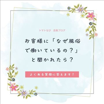 こんにちは。トマトなび求人担当です。 今日は、当店で働く女の子たちから聞かれた質問にお答えします。 「お客様に『なぜ風俗で働いているの?』と聞かれたら、どう答えたらいいですか?」 この質問、多くの女の子が悩むポイントだと思います。 正直に答えるべきか、適当に流すべきか…。 安心してください、大丈…