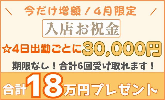 チャトレ最大級の総額18万円を支給!条件はシンプルに4回出勤ごとに3万円をお渡し◎