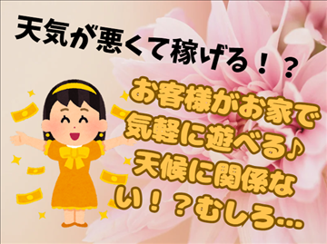お疲れ様です! もう梅雨??って思うくらい天気が晴れたり崩れたり 外に出たくないですよね( ;∀;) チャットレディの女の子たちも、雨の日・雪の日などは 休みが増えます…。 ただ、皆さんが外に出たくないのと同様に お客様も外には出たくありません! なので、天気が悪い日はデリ…