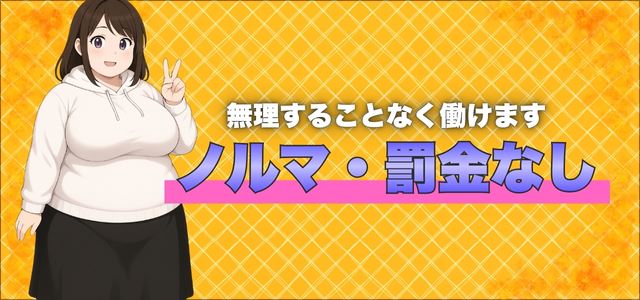 そして特に罰金・ノルマは一切ありません。マイペースな方でものびのびと自分らしくご活躍いただけます