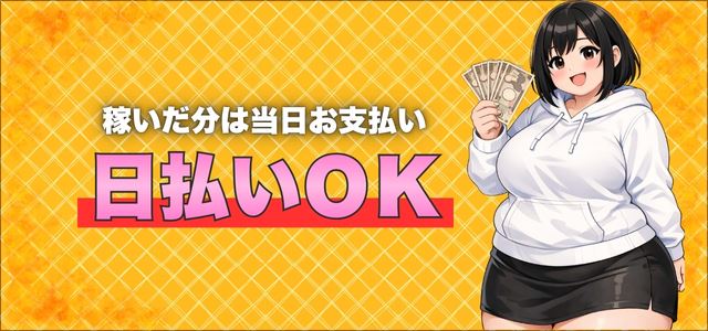 完全日払いでお給料は当日にお持ち帰りできます。働いたその日から高収入を手にできます。急な出費にも安心ですね・・。エリア最高ランクの90分バック額11,000円~と高いバック率70%以上を実現しています