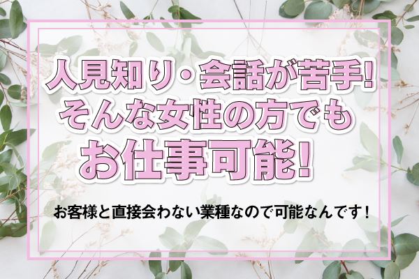 その為、お客様と直接会う事も無く、触れられることも、会話する事も一切ありません!